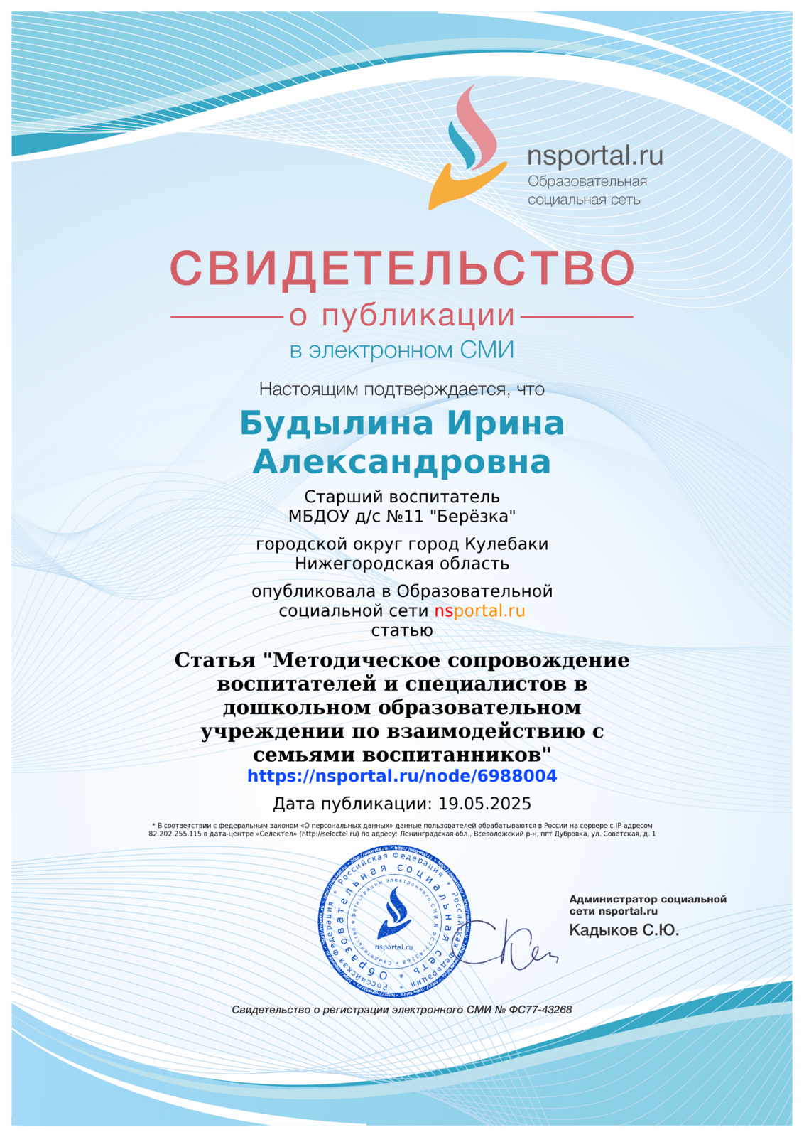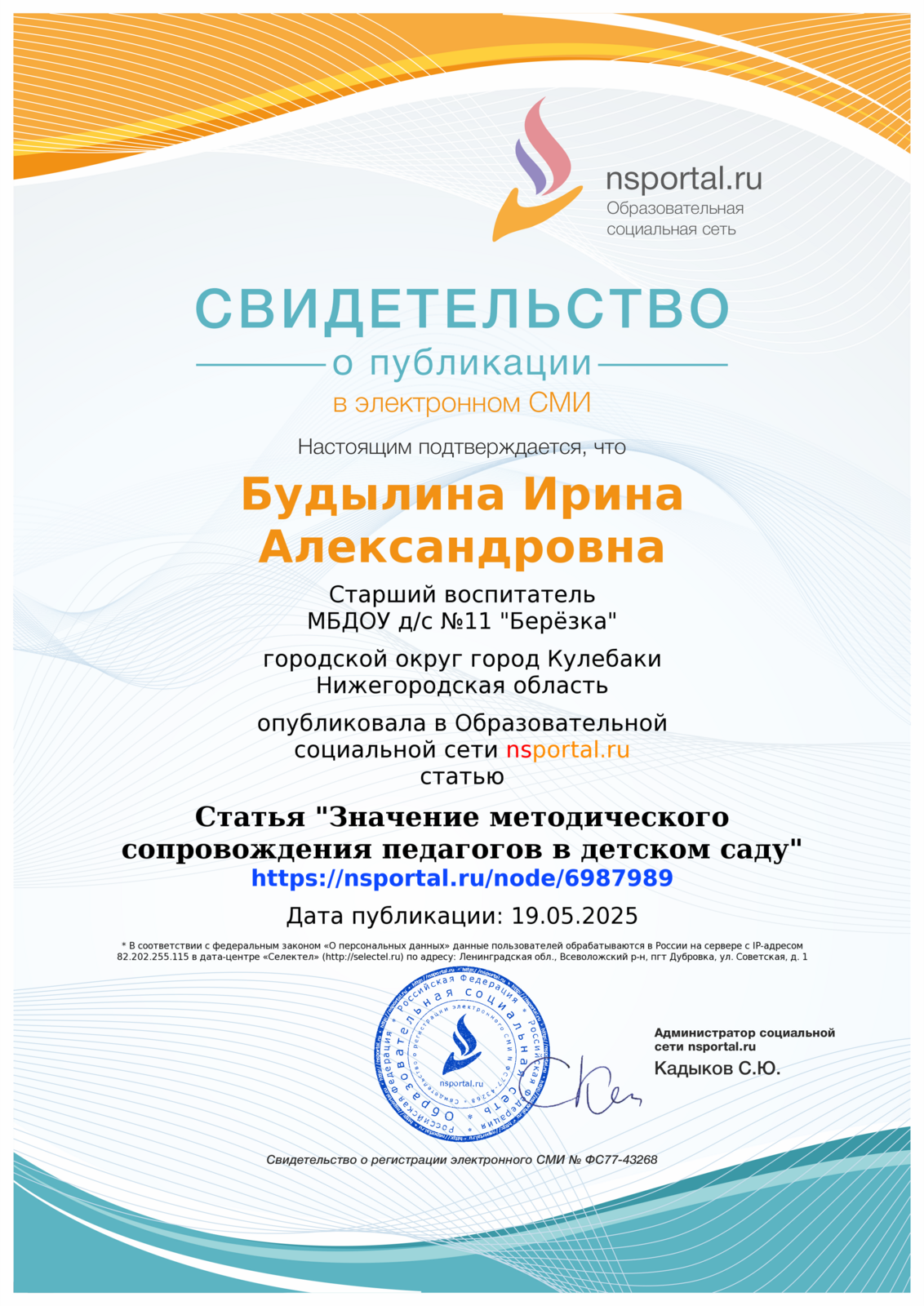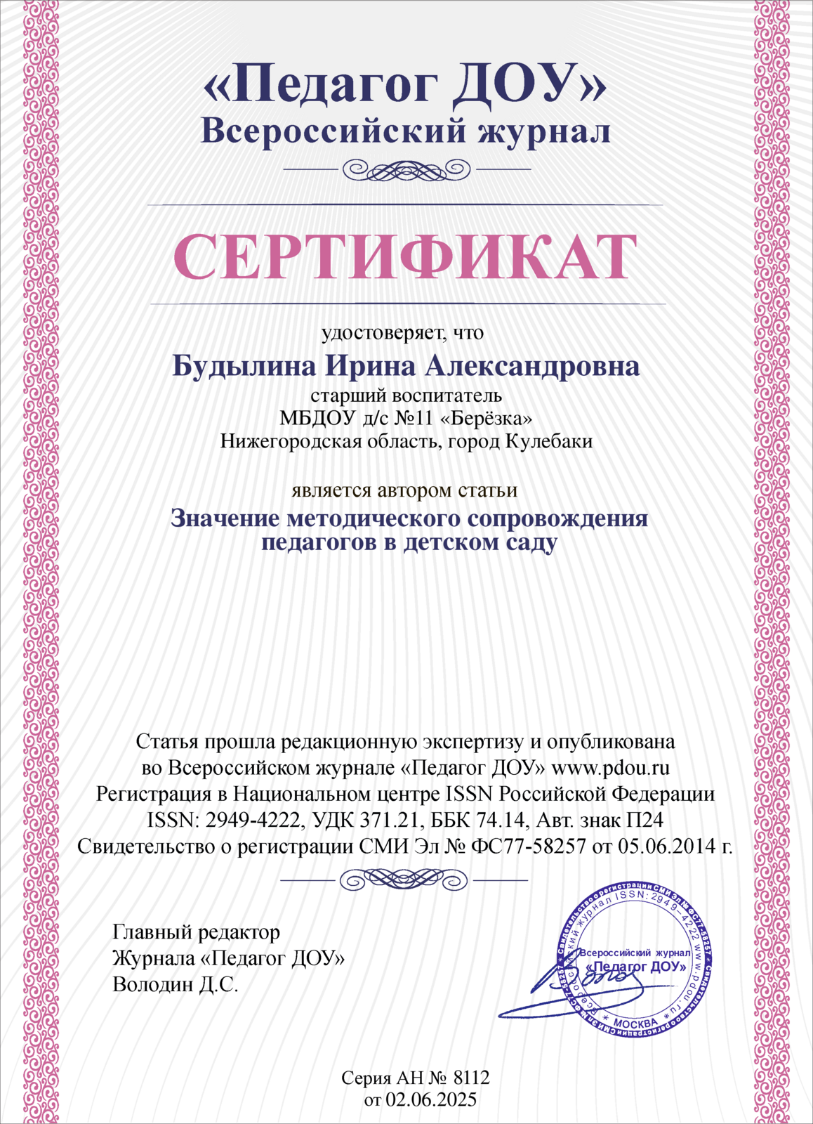 СЕРТИФИКАТЫ И ДИПЛОМЫ О ПУБЛИКАЦИЯХ МЕТОДИЧЕСКИХ РАЗРАБОТОК
