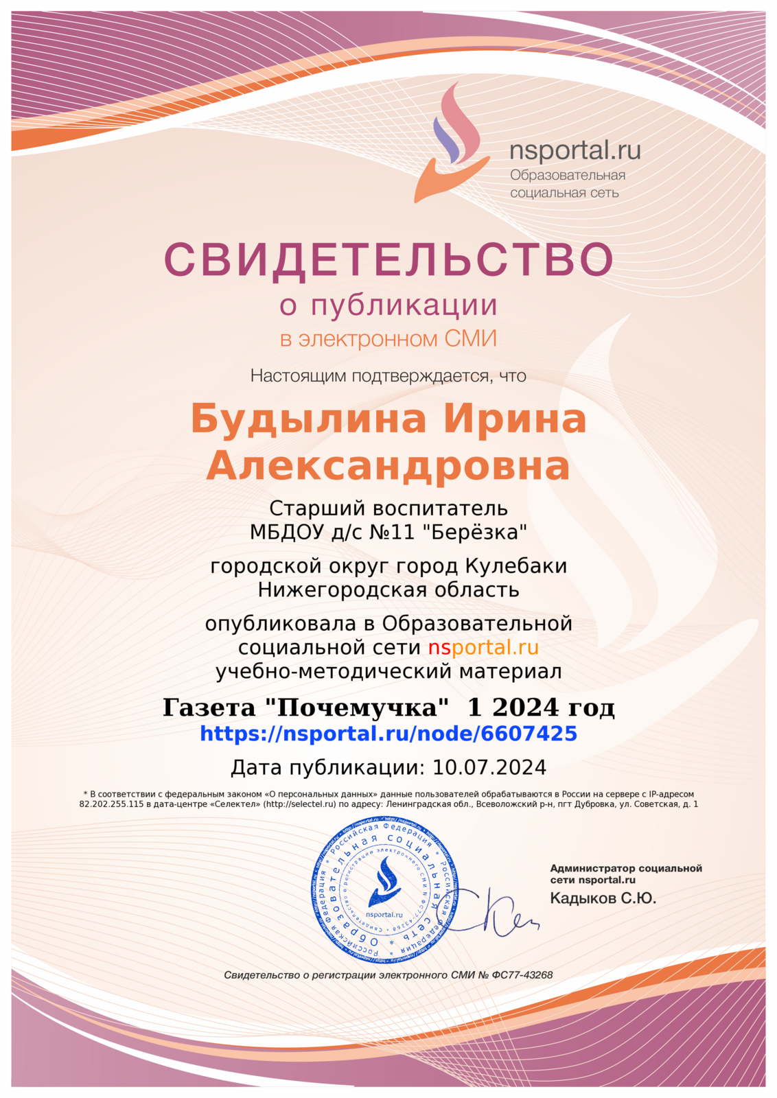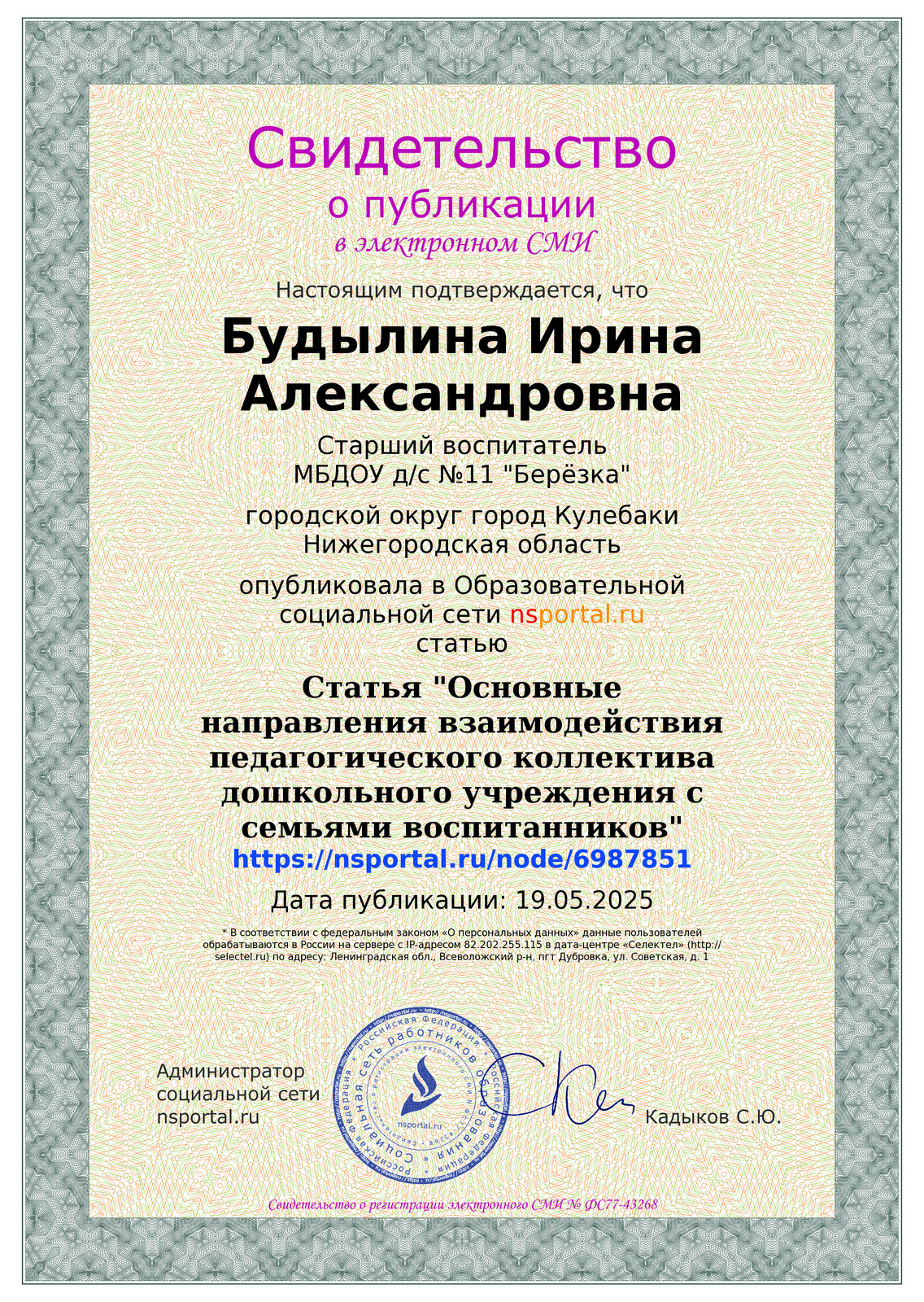 607010, Нижегородская область, г. Кулебаки, ул. Мира, дом 12