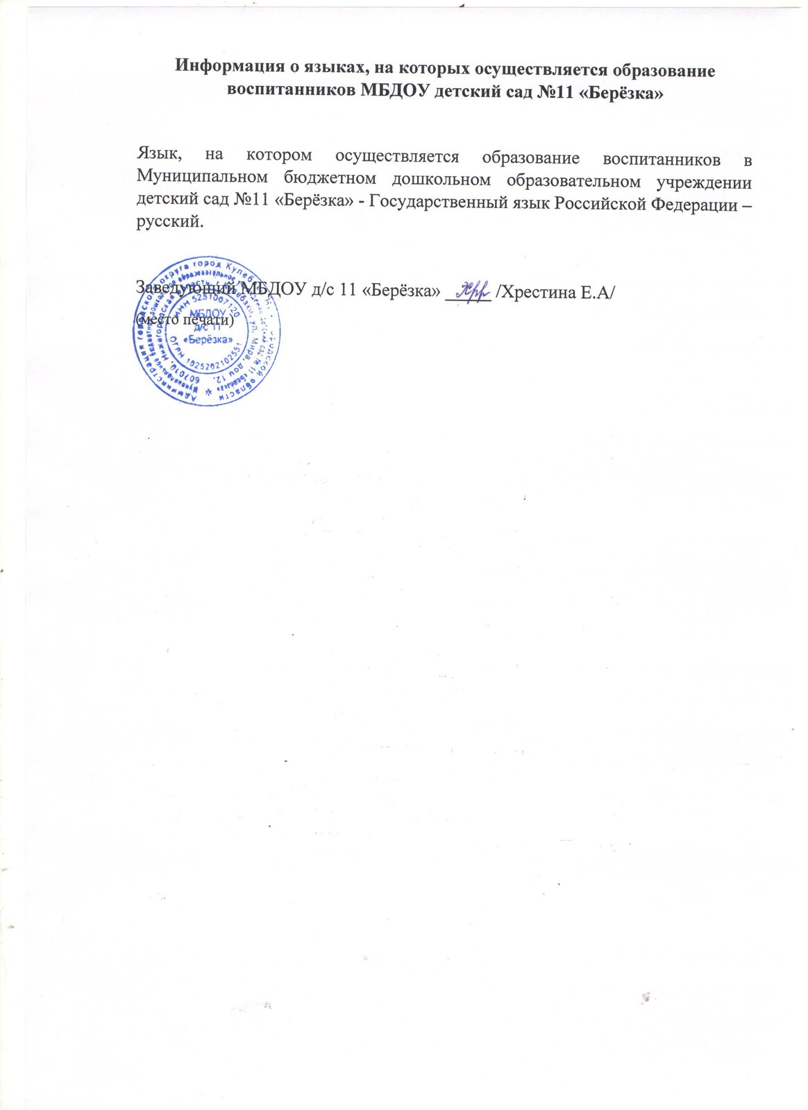 | Образовательная программа дошкольного образования МБДОУ д/с 11 "Берёзка" | Образовательная программа дошкольного образования МБДОУ д/с 11 "Берёзка" | дошкольное образование | Не используется | Не указан | Не указаны | Не указаны | |