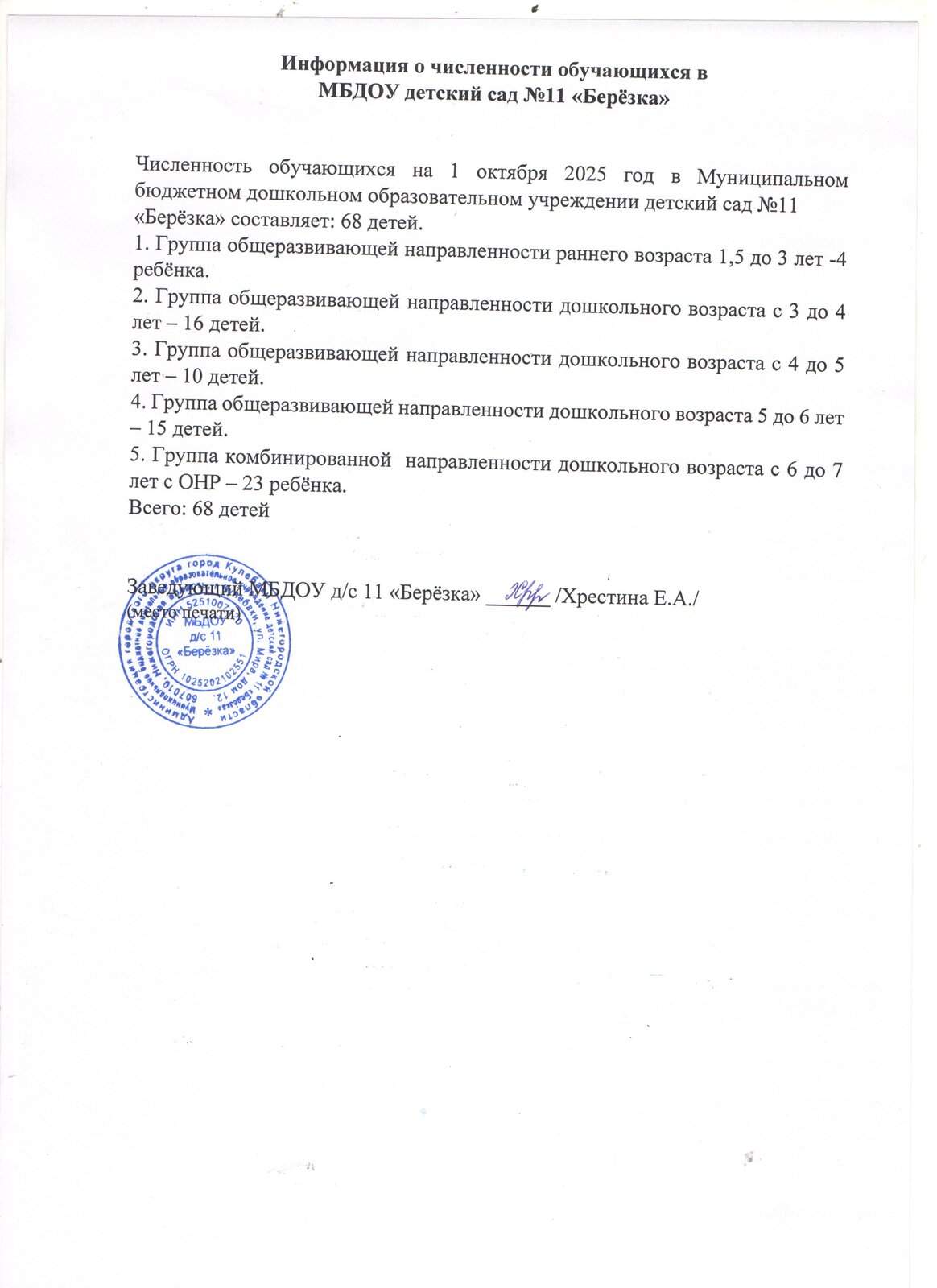 - Группа общеразвивающей направленности дошкольного возраста 3-4 лет. - 12 воспитанников;